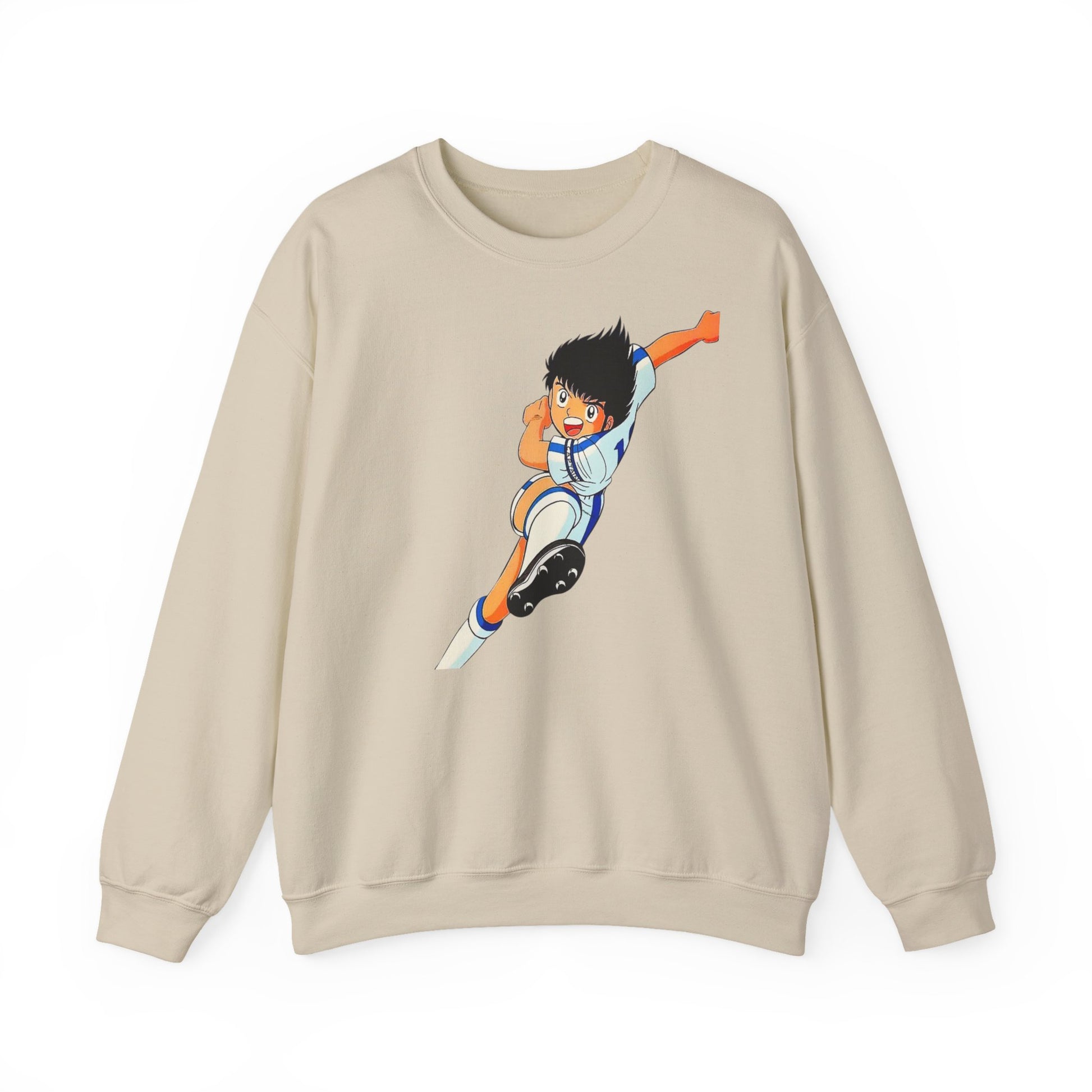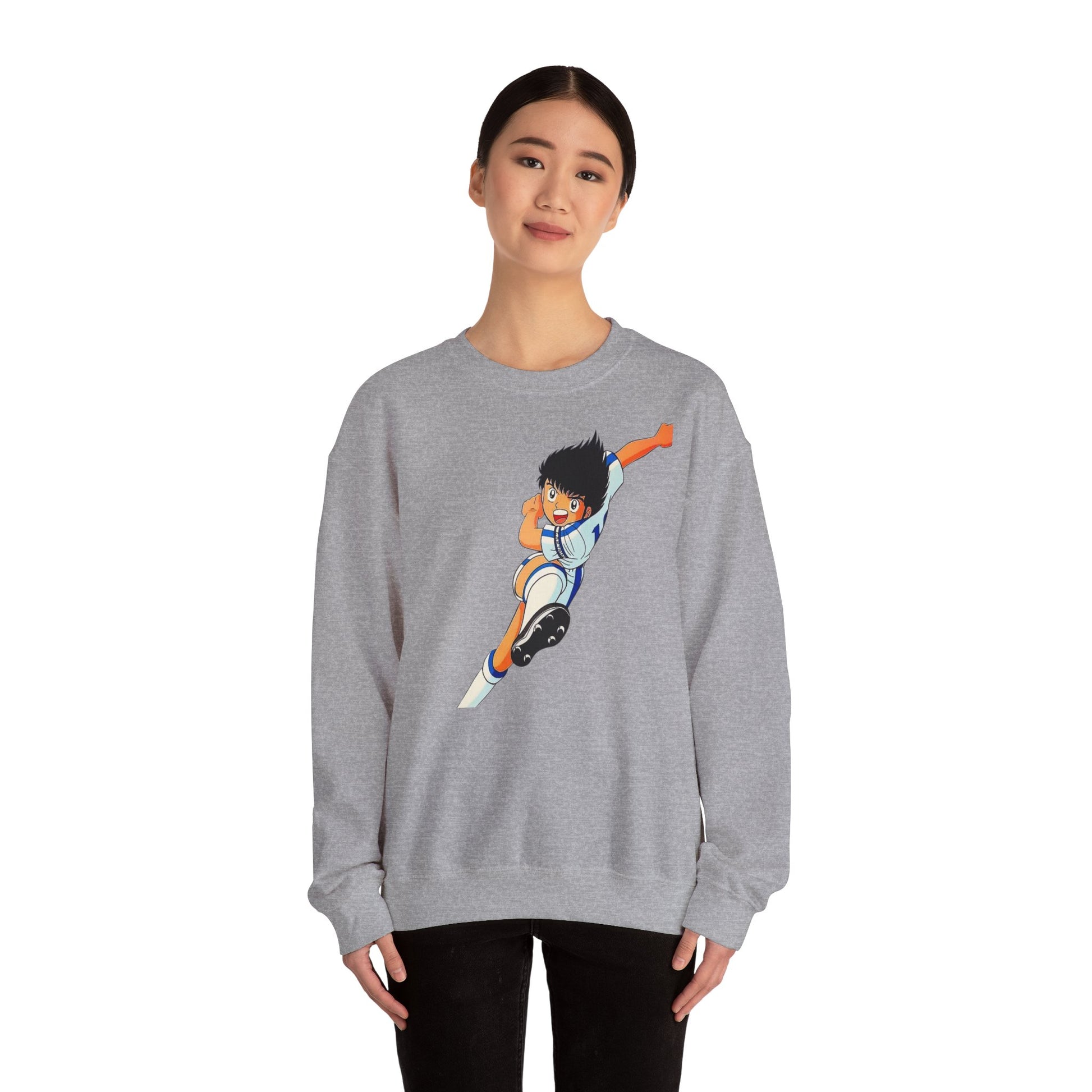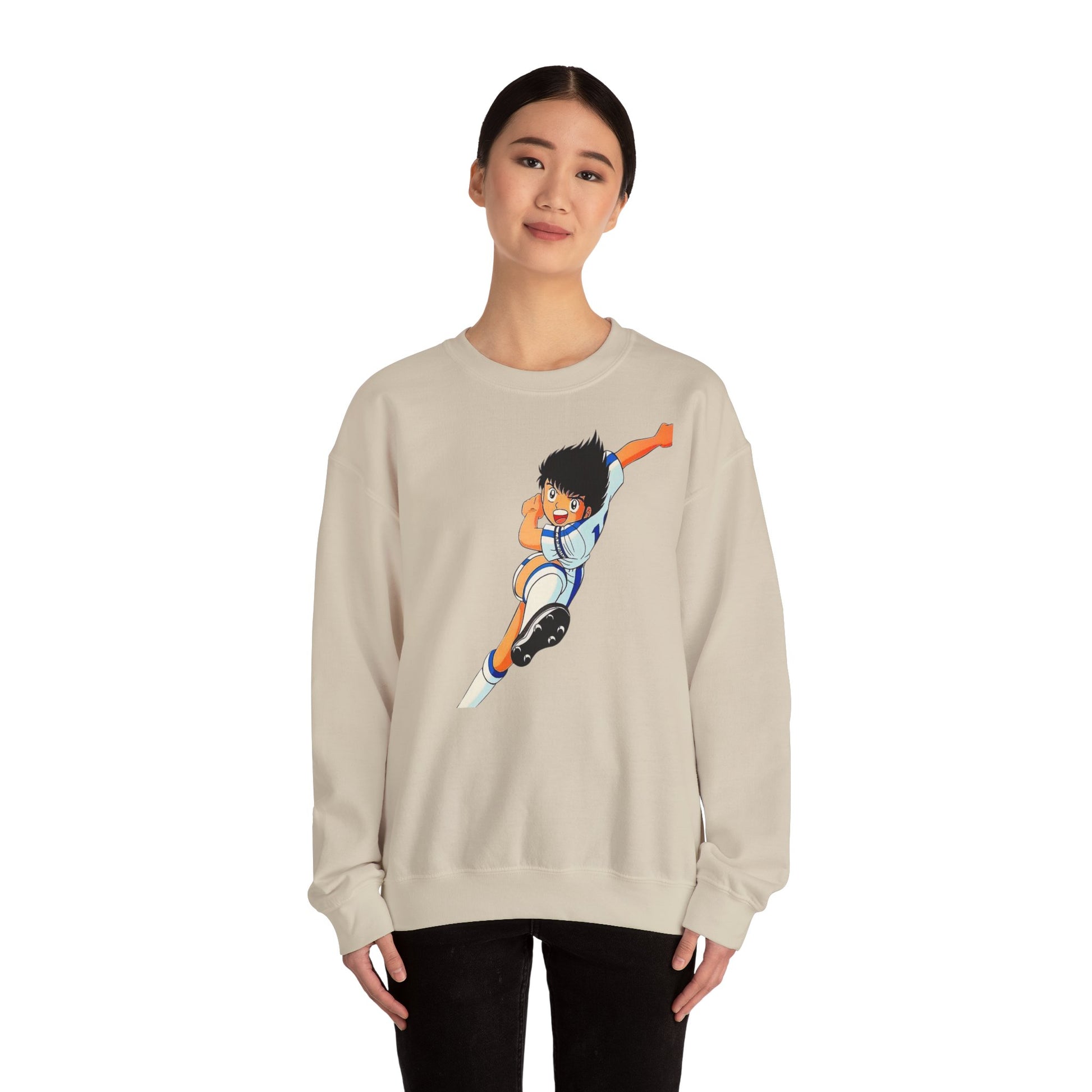This cozy crewneck brings playful anime energy to everyday wear. The mid-weight blend and classic fit keep you warm without weighing you down, while the bright, action-packed illustration adds a youthful, sporty pulse to your outfit. Wear it on game nights, casual weekends, or whenever you want to nod to nostalgia and animated heroes — it layers easily under a jacket and pairs well with jeans or joggers. The soft tear-away label and ribbed collar keep comfort front and center, while durable double-needle stitching means it stands up to regular wear.