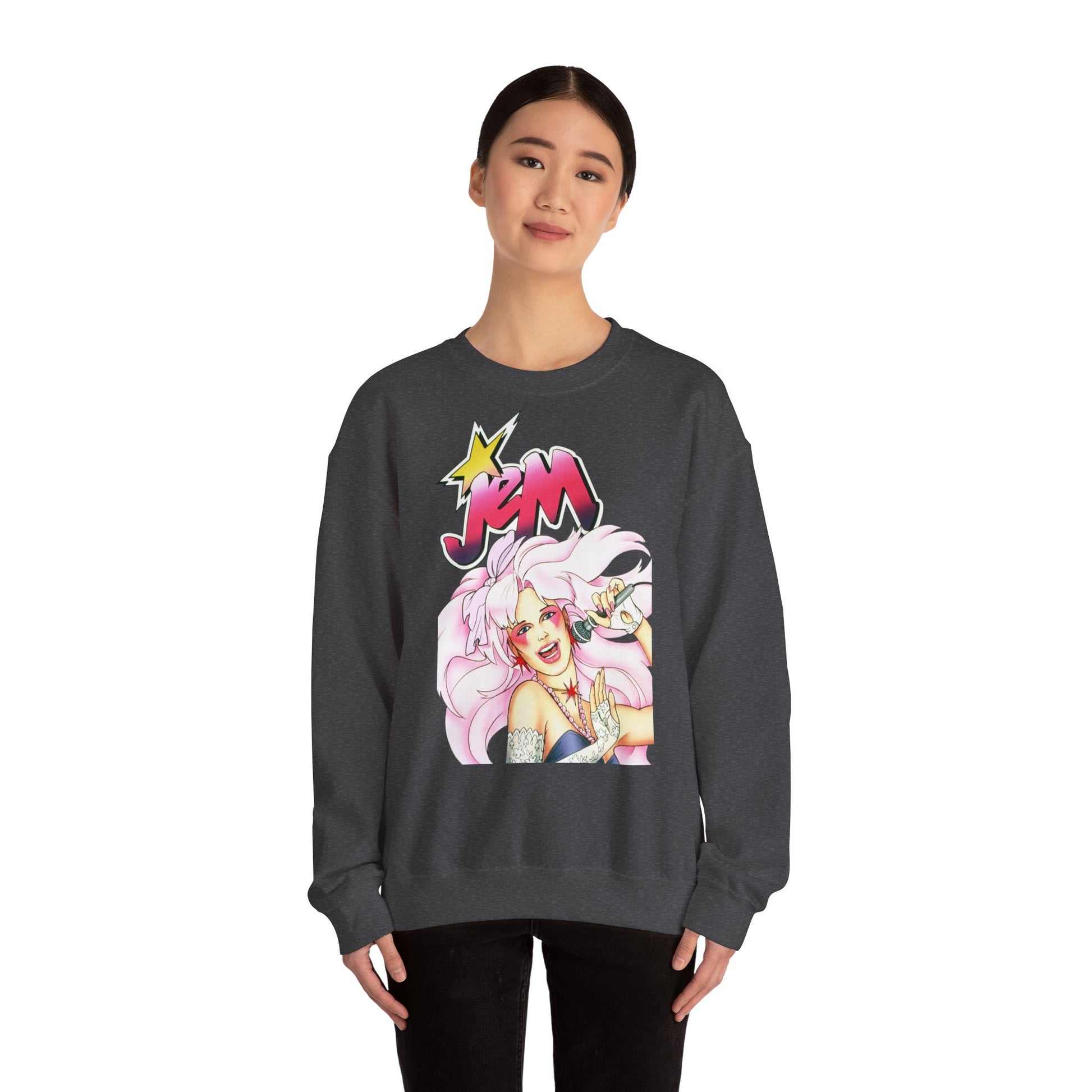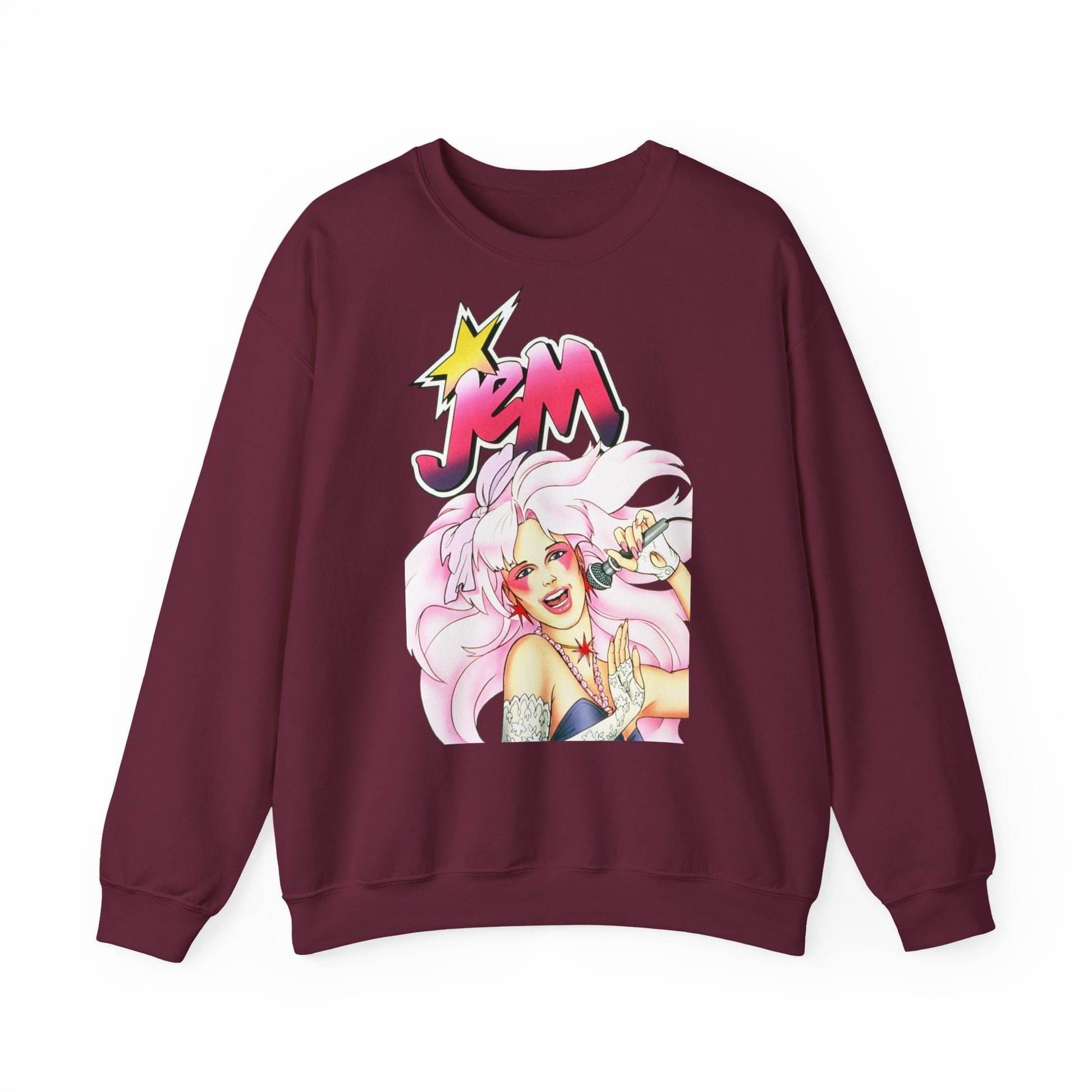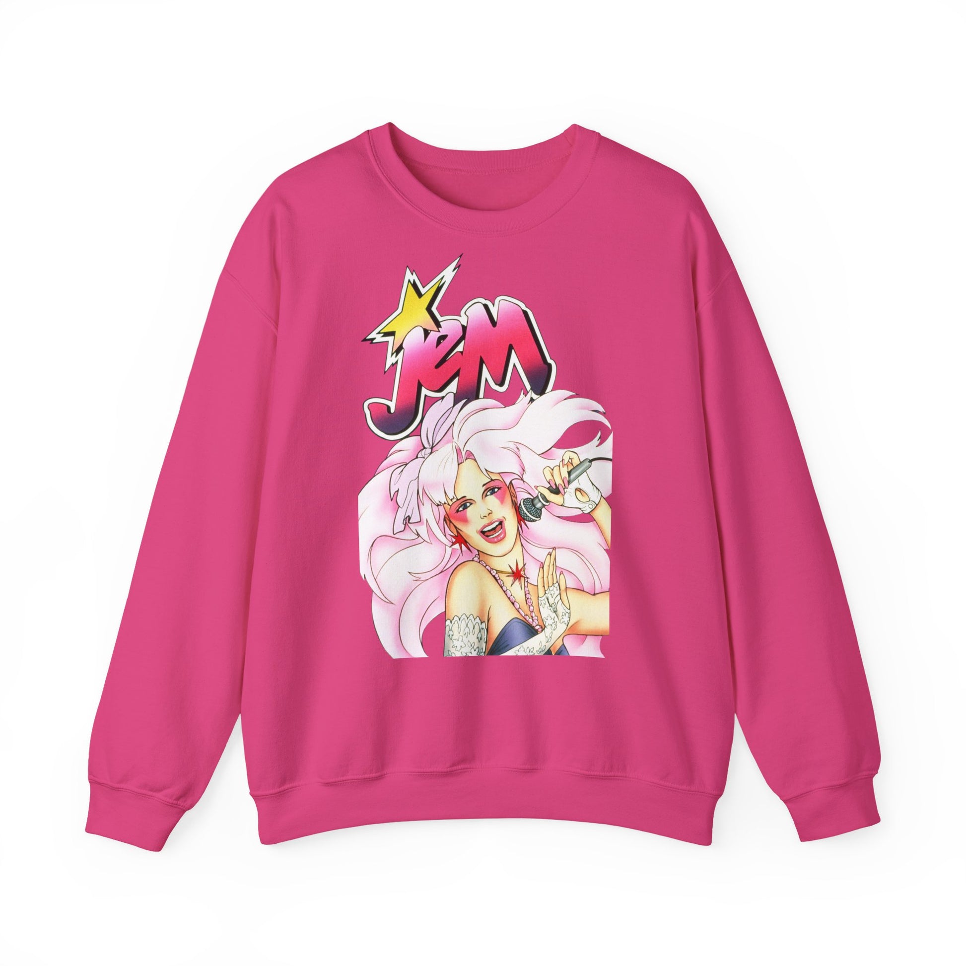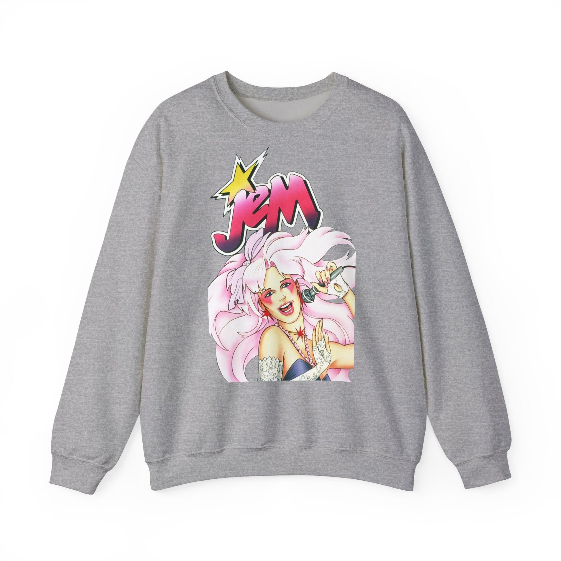 FELPA Jem & The Holograms Graphic Sweatshirt – Retro 80s Pink Cartoon Crewneck