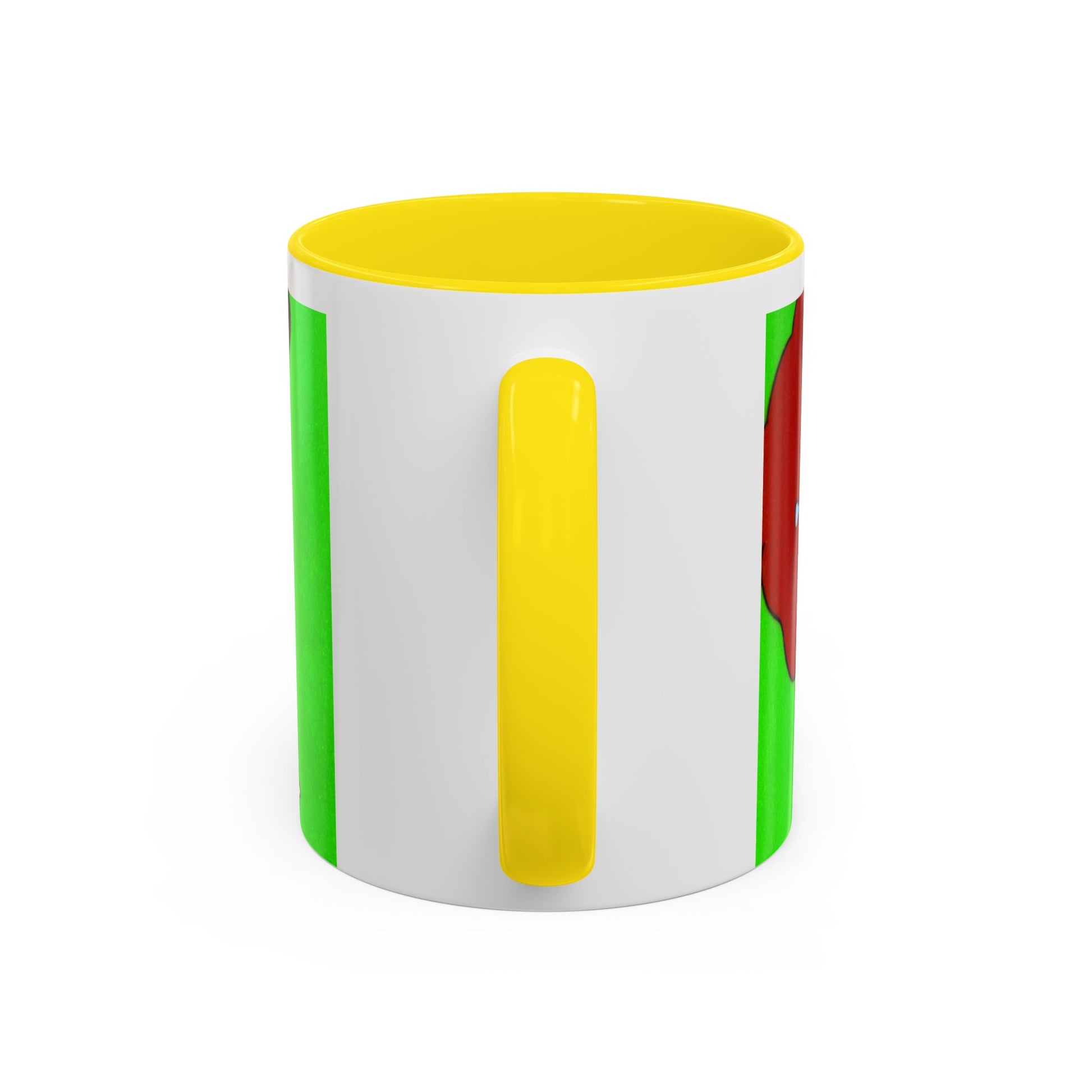 Bright, nostalgic, and delightfully whimsical — this ceramic accent mug brings playful charm to slower mornings and busy desks alike. The glossy white exterior frames a colorful illustration that feels hand-drawn: a rosy-cheeked child and a cheerful, bow-tied creature set against a vivid green background. The colored interior and handle add a lively contrast that lifts the design and brightens your routine. It’s the kind of mug that sparks a smile while you sip coffee, tea, or cocoa and pairs naturally with cozy catch-ups, creative breaks, and small daily rituals.