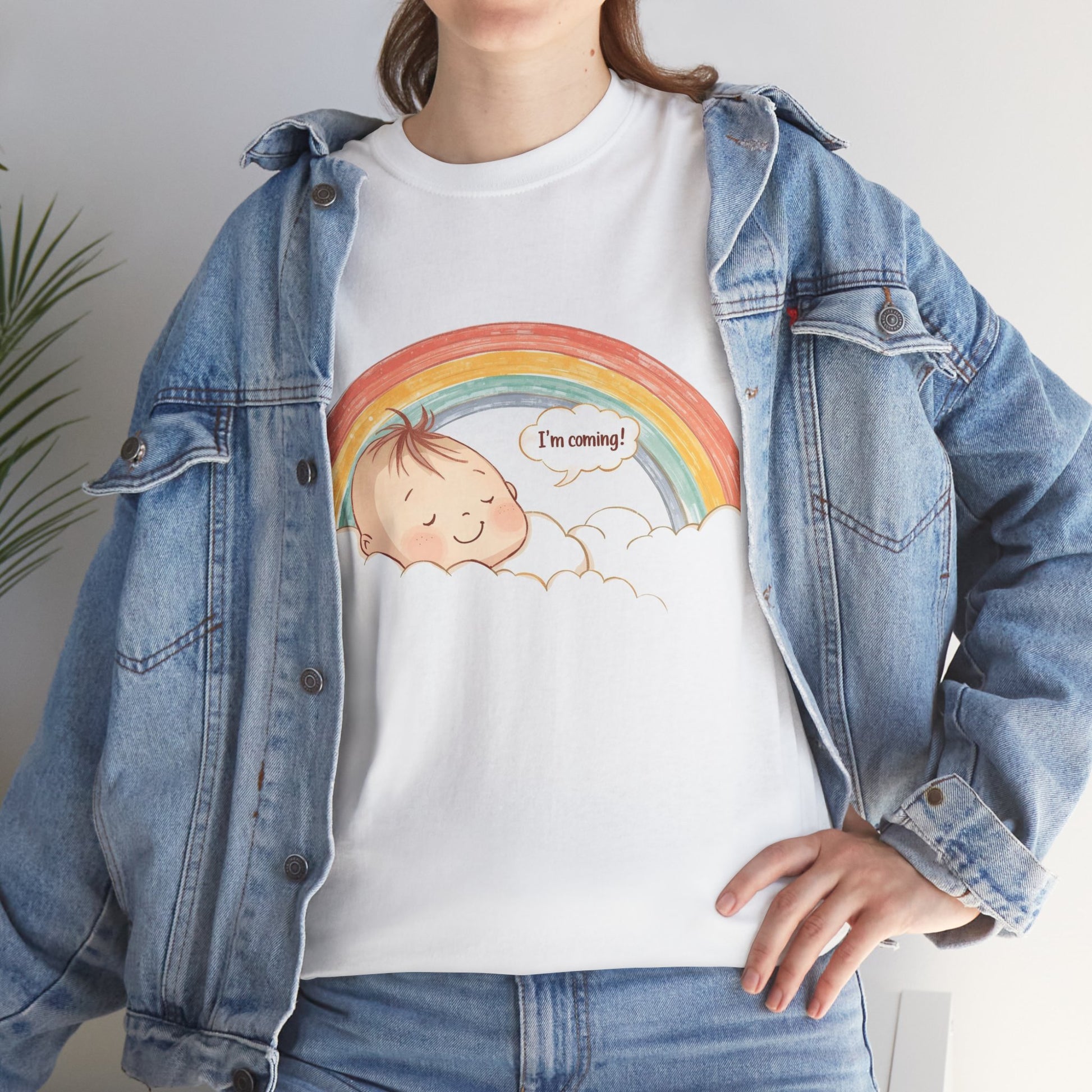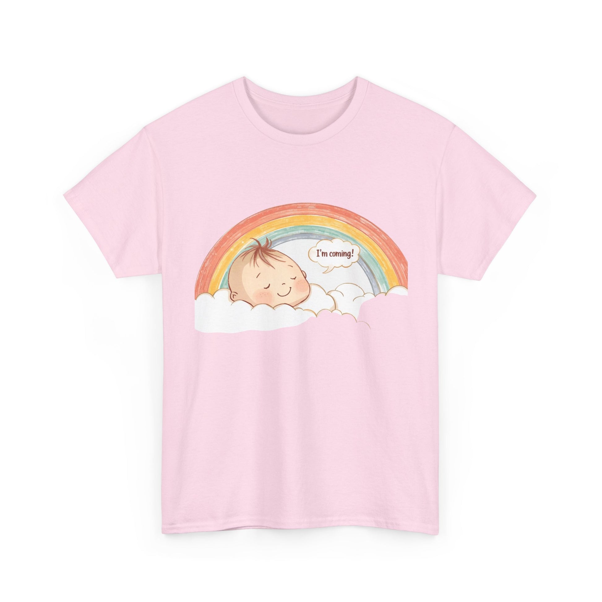 This Unisex Heavy Cotton Tee is the perfect blend of comfort and style, radiating warmth and positivity. The cheerful, eye-catching design featuring an adorable baby against a vibrant rainbow background adds a touch of joy to your wardrobe. Ideal for casual outings, cozy home days, or as a thoughtful gift, this tee fits seamlessly into any lifestyle. It’s perfect for baby showers, family gatherings, or simply celebrating new beginnings. Whether you're a parent, relative, or friend, this tee is relevant for anyone who wants to embrace the joy of life and new arrivals. Celebrate holidays like Mother’s Day or special occasions all year round with this delightful addition to your clothing collection.