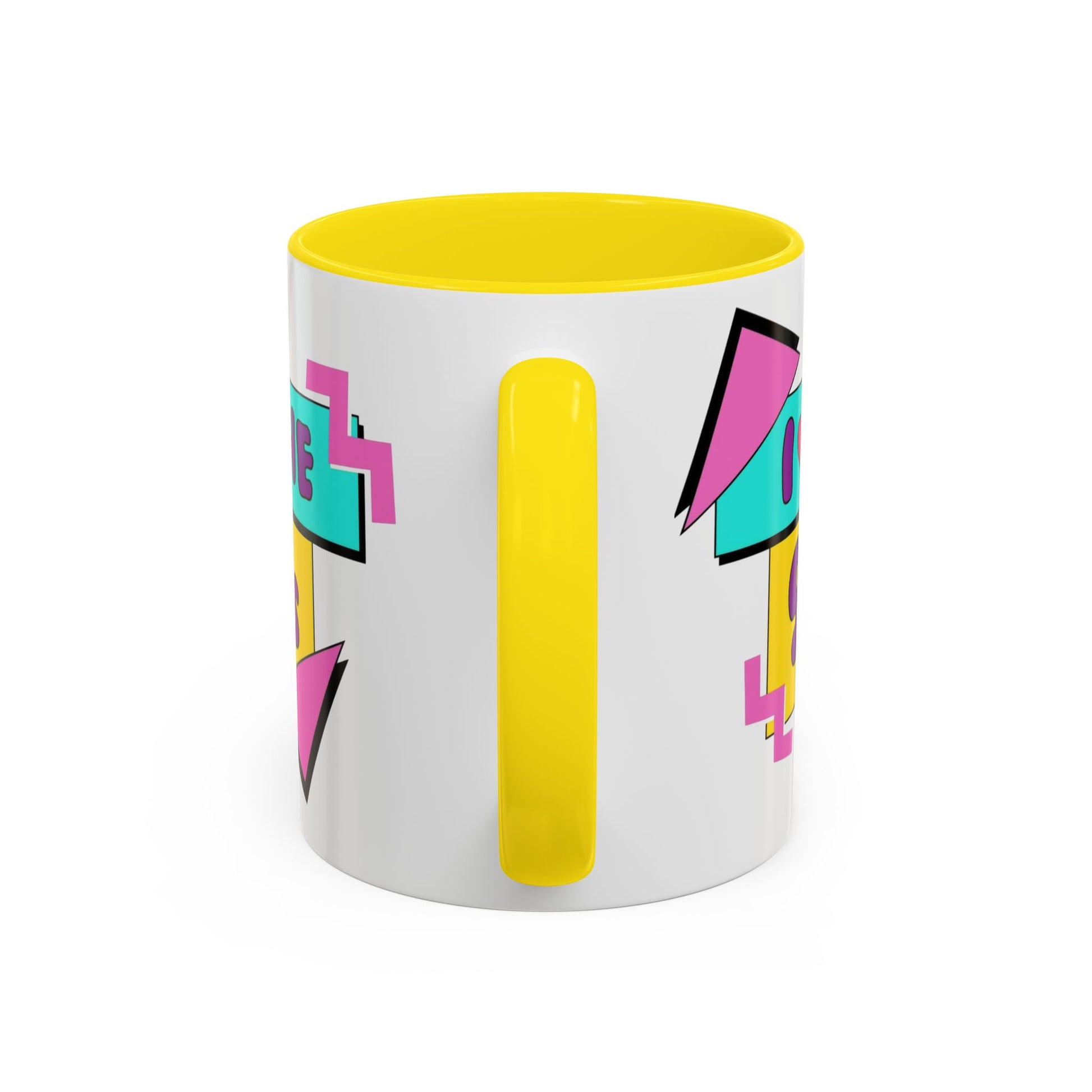 Bright, nostalgic, and full of playful energy — this ceramic mug brings 90s flair to your morning coffee or evening tea. The bold, colorful graphic pops against the glossy white body while the contrasting interior and handle add an extra dash of retro attitude. Hold it in your hand and you’ll feel like you’ve stepped into a rewind of neon, geometric shapes, and carefree playlists. It’s made to stand up to everyday use, keeping that vibrant print sharp through washes and reheats so the vibe lasts.