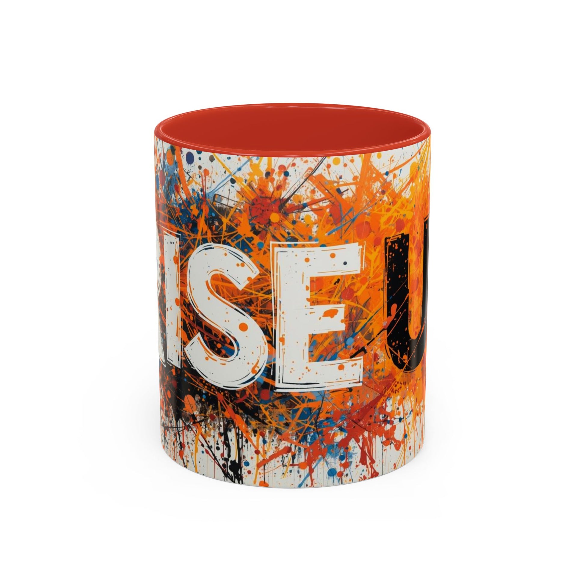 TAZZA Rise Up - Coffee Mug — Bold Orange Paint-Splash Motivational Mug (11/15oz)